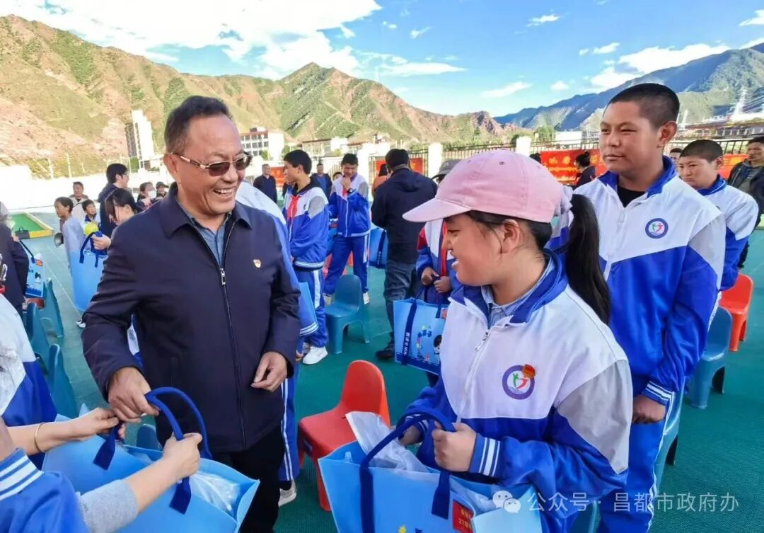 为庆祝中华人民共和国成立76周年,巩固深入贯彻中央八项规定精神学习教育成果,进一步增强党组织的凝聚力和战斗力,传递对特殊儿童群体的关心关爱,2025年9月26日下午,市政府办公室机关党委组织党员干部前往市特殊学校,举办“迎国庆感党恩·爱心陪伴护成长”为主题的交流互助活动。市委副书记、市长罗庆伍,副市长蒲玉辉、高晓东,市政府秘书长平措丁增及在家秘书长班子成员均以普通党员身份参加活动。