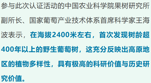 图为中国农业科学院果树研究所副所长、国家葡萄产业技术体系首席科学家王海波(右)与昌都市政协副主席泽仁罗布共同为古葡萄树授牌。记者 温凯 平措郎加 摄
