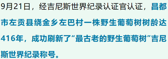 图为此次刷新吉尼斯世界纪录的昌都市左贡县绕金乡左巴村古葡萄树,树龄高达416年。记者 温凯 平措郎加 摄