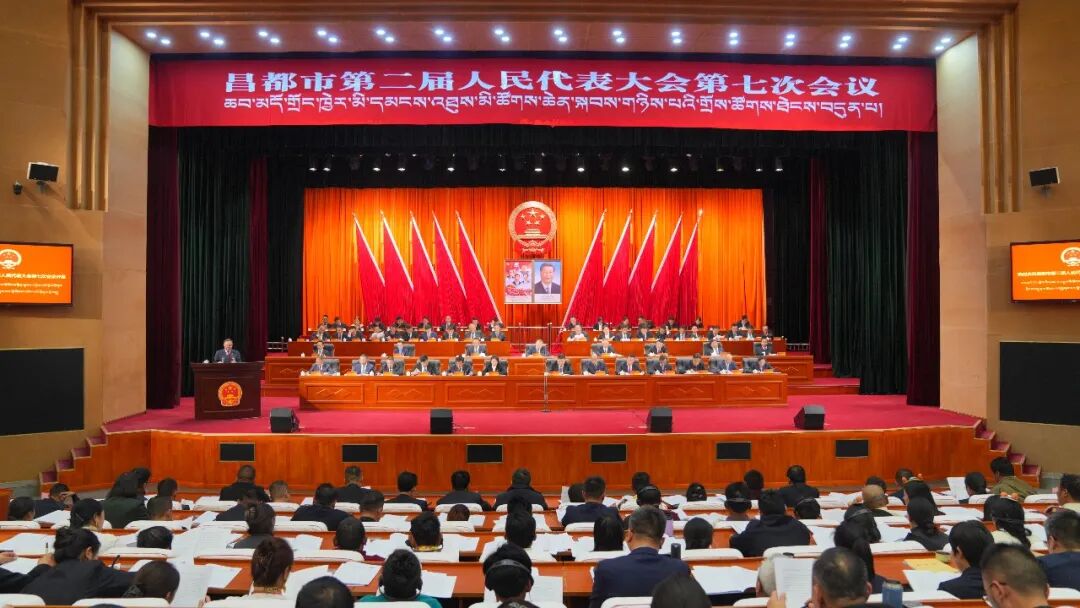 受市人大常委会委托,市人大常委会主任齐应海向大会作市人大常委会工作报告。他说,2025年市人大常委会坚持以习近平新时代中国特色社会主义思想为指导,深入学习贯彻习近平总书记关于坚持和完善人民代表大会制度的重要思想,在市委的坚强领导下,坚持党的领导、人民当家作主、依法治国有机统一,大力发展全过程人民民主,积极履行宪法、法律赋予的各项职权,不断增强政治统领力、法治引领力、监督执行力、民心凝聚力、职责落实力,为推进昌都长治久安和高质量发展提供民主法治保障。一年来,召开市人大常委会会议6次、主任会议15次,报批和审议地方性法规4件,听取和审议“一府一委两院”工作报告17项,开展执法检查4次、专题调研10次、专题询问2次,圆满完成市二届人大六次会议确定的目标任务。